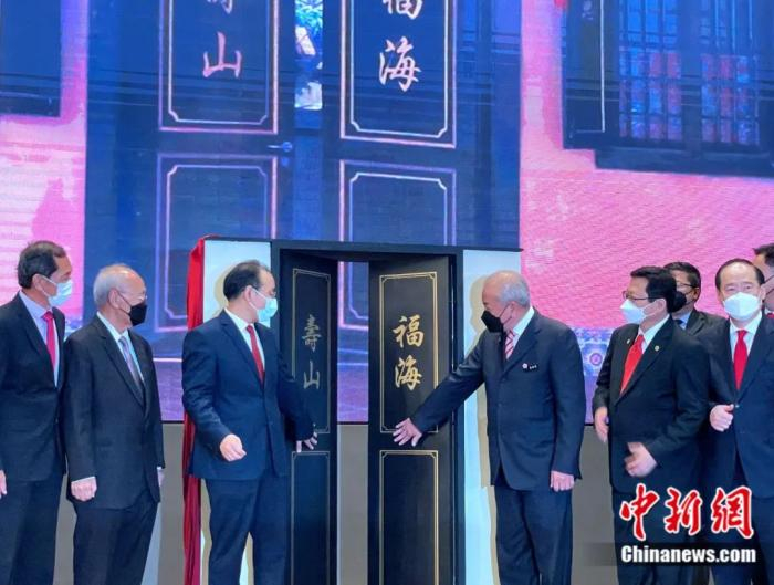 2022年4月,在华总积极推动下,马来西亚华总华人博物馆在受疫情影响闭馆两年后重启,吴添泉(右二)和中国驻马来西亚大使欧阳玉靖(右三)等共同为博物馆“开门”。中新社记者 陈悦 摄