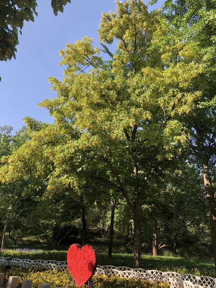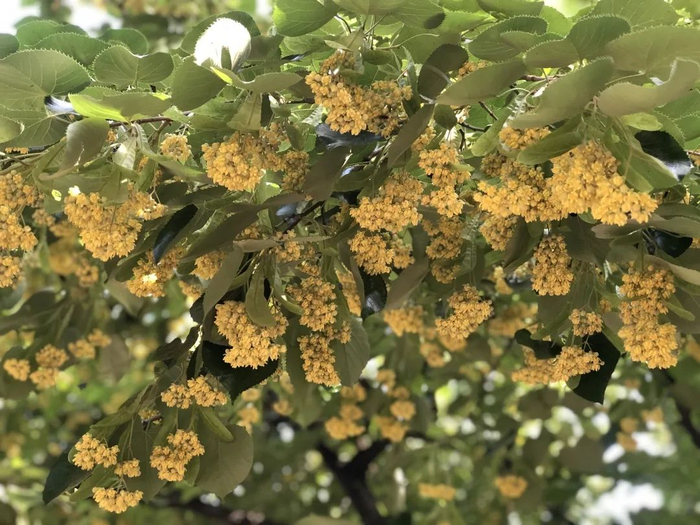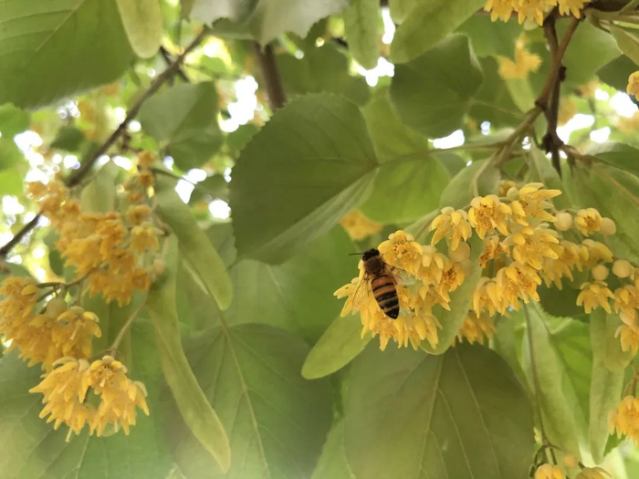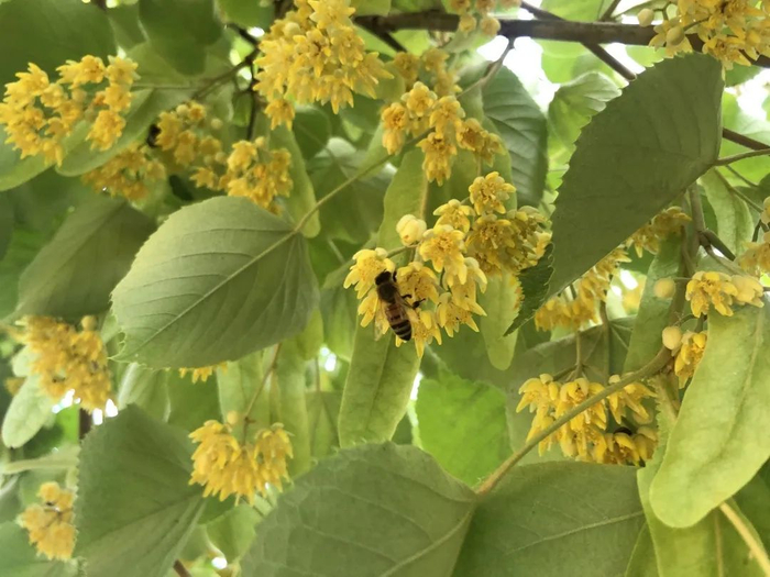 凭借香山优良的小气候,四十余株的椴树参天茂密,遮阴蔽日。到了花期,一串串黄色、白色的花儿绽放,引来蜜蜂采集花蜜,嘤嘤嗡嗡的美妙声音,令人在树下驻足,感受自然带来的身心愉悦。