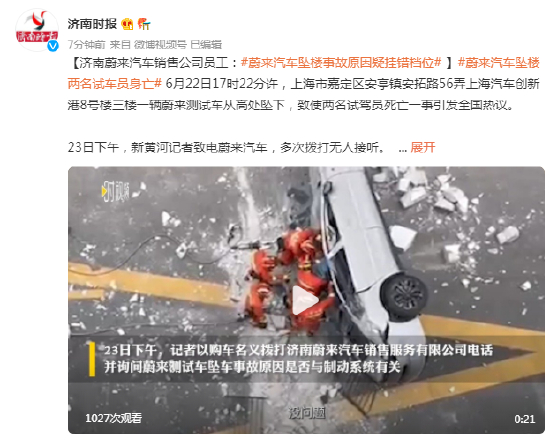 济南蔚来汽车销售公司员工:蔚来汽车坠楼事故原因疑挂错档位(新黄河)