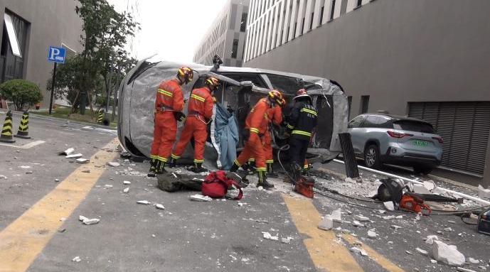 上海一蔚来汽车从3楼掉落,车内2名被困人员救出后送医(澎湃新闻)