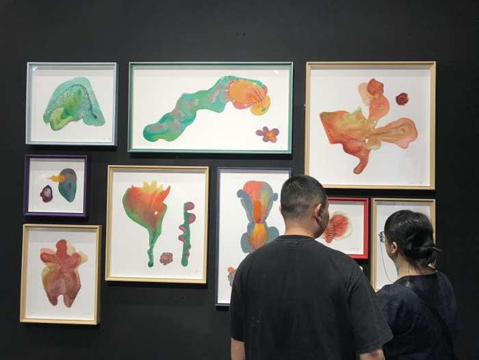 像目前正在手工艺术实践专业读研二的蔡佳航带来的作品《大花园》就颇有梦幻感。“‘颜料’我采用的是化学漆加大漆,让它‘自由’流淌……最终呈现出来的效果就很像是我儿时记忆里花园的样子。”