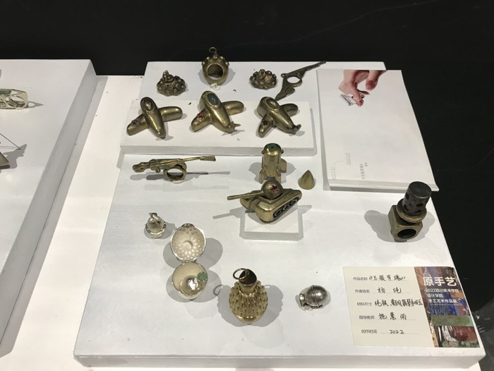 据介绍,本次展览将主题设定为“原手艺”主要有两方面的考虑。一是对传统工匠精神追本溯源的践行,二是对现代手工技艺美用合一的追求。“大家可以看到这些未来的艺术家们把大漆、黏土、布料、金属等材料升华成了雕塑、绘画、首饰、器物等形式的艺术品,这里面既然有对优秀传统文化的传承,也有服务社会的艺术担当。”
