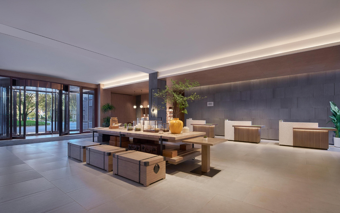 北京延庆源宿酒店自然采光充足的大堂。