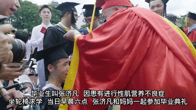 其中,有一位坐轮椅的毕业生