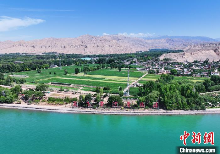 航拍贵德县黄河岸畔绿意盎然。 马铭言 摄