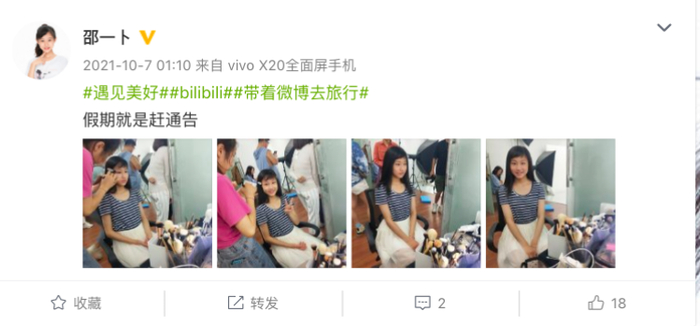 再往前翻,也能看出她是一个积极开朗的女孩,经常分享一些拍戏工作日常,也很会发现生活的美。