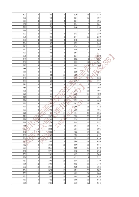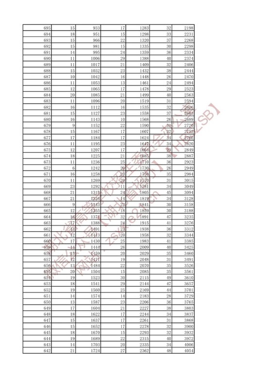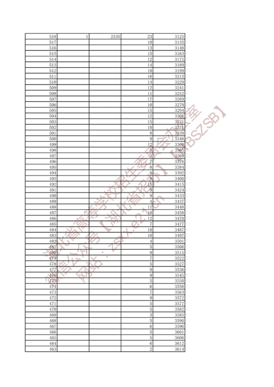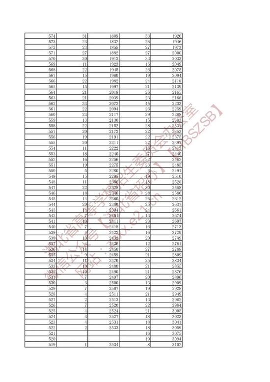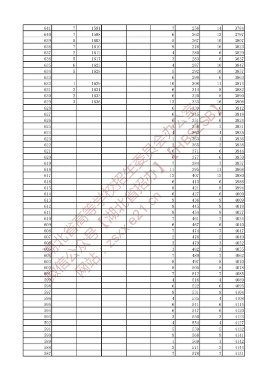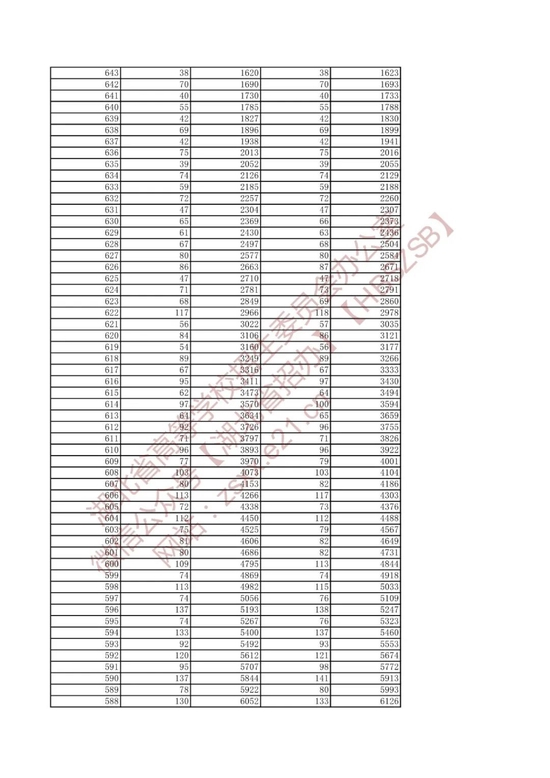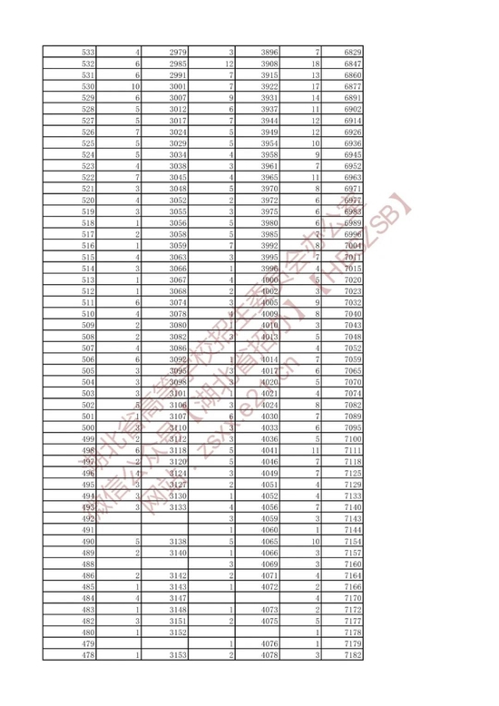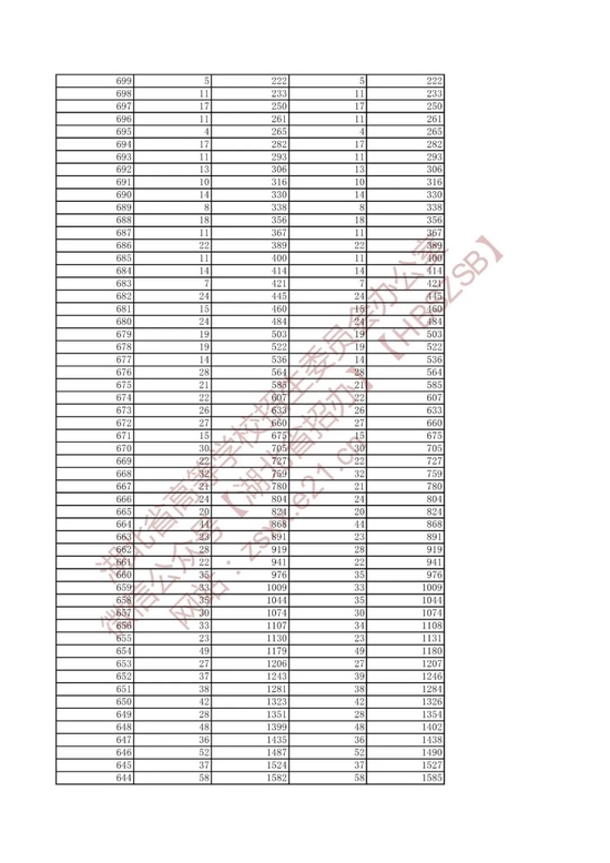 招生排序一分一段统计表