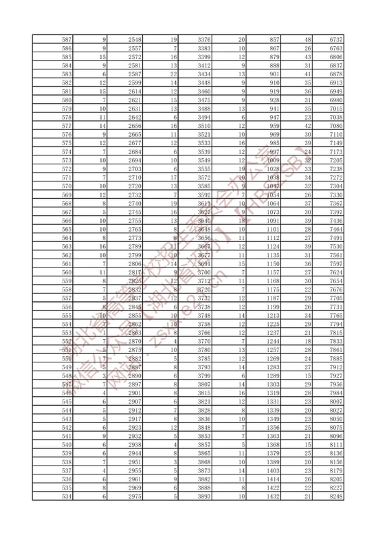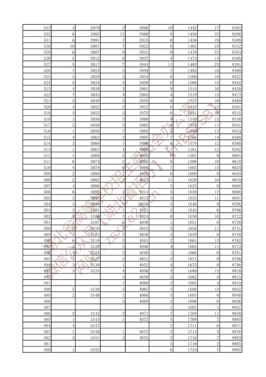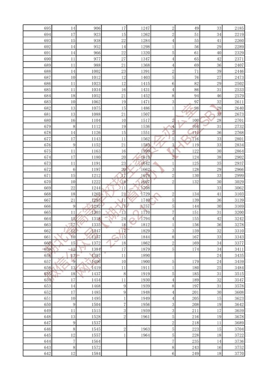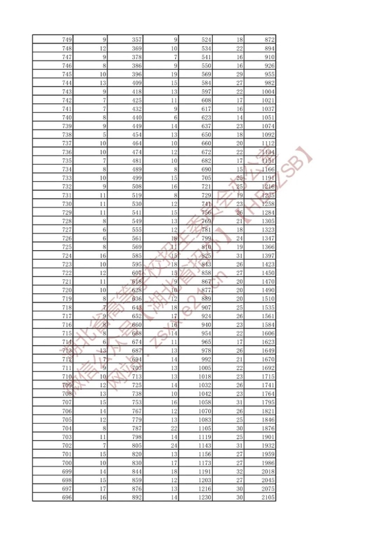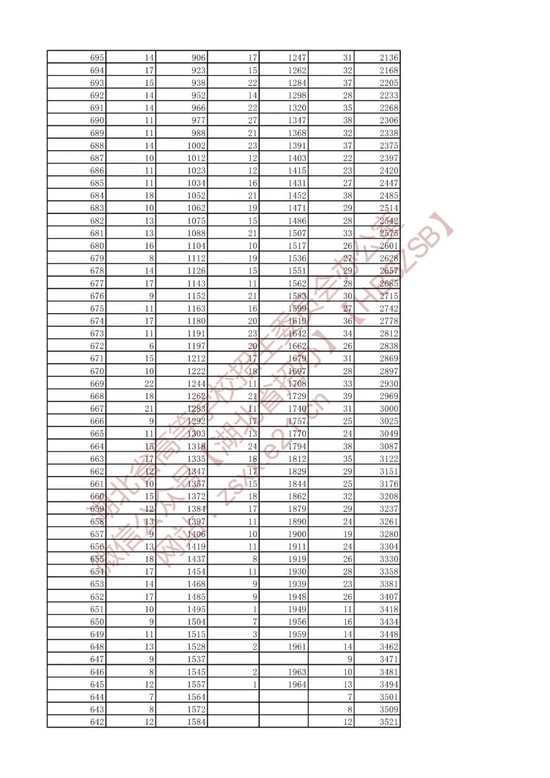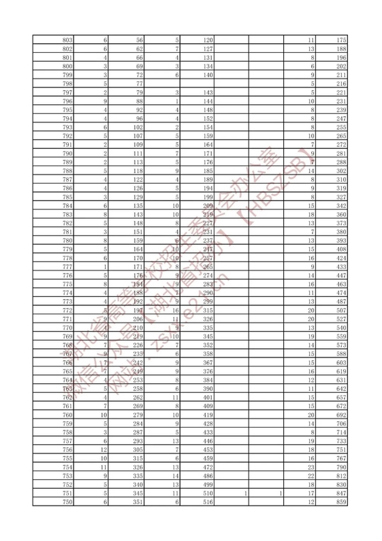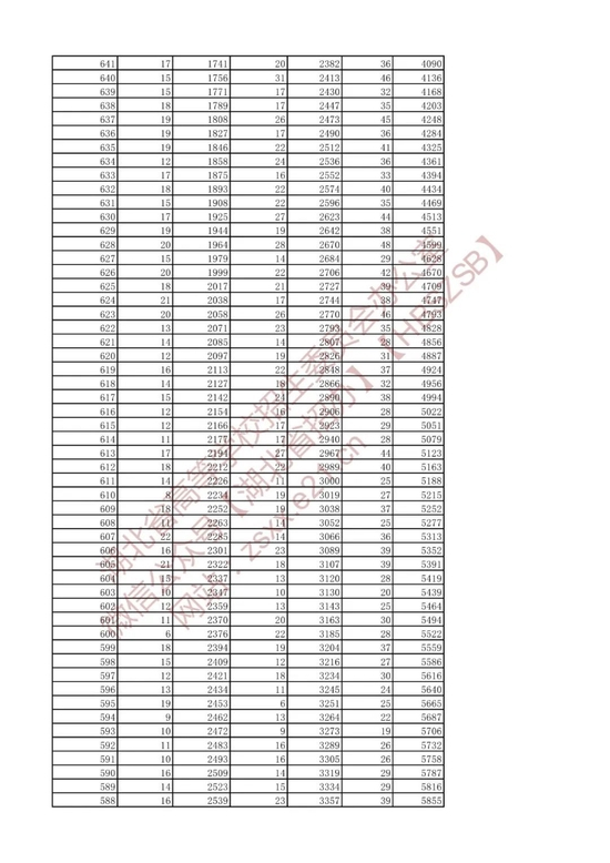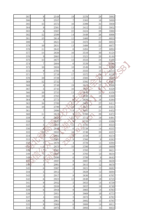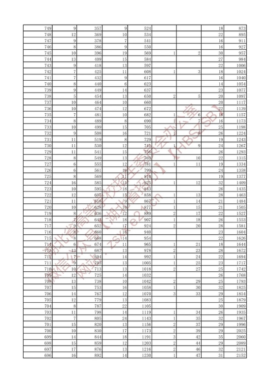 招生排序一分一段统计表