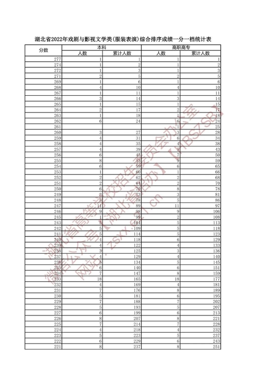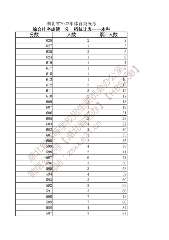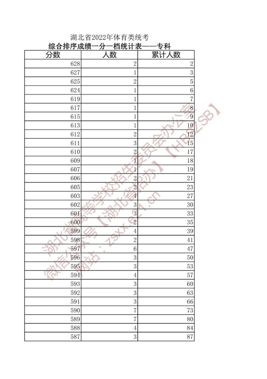 湖北省2022年高考艺术类、体育类、技能高考一分一段表来了!