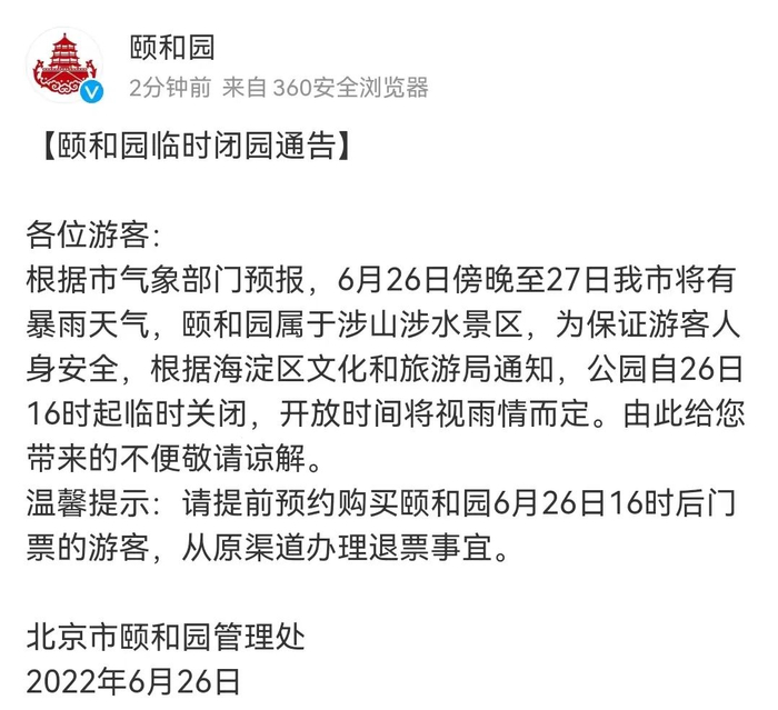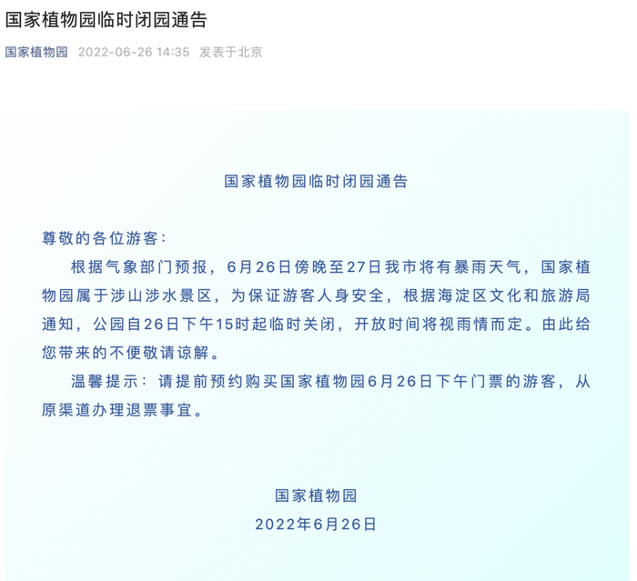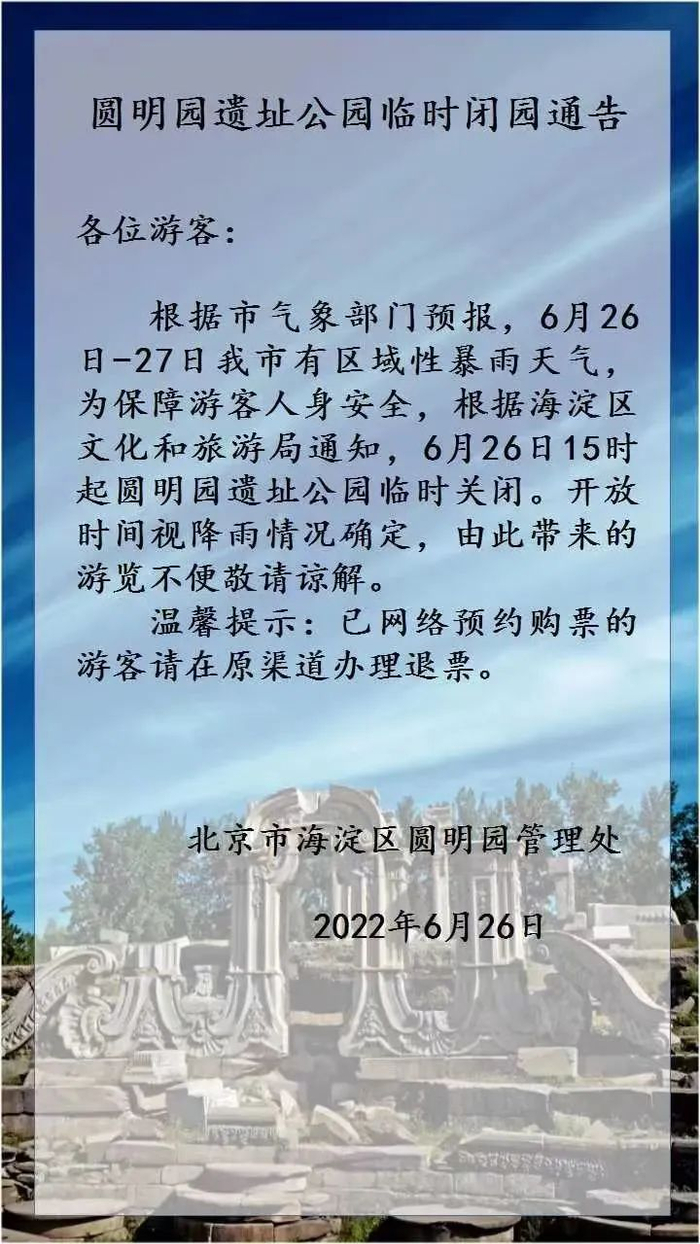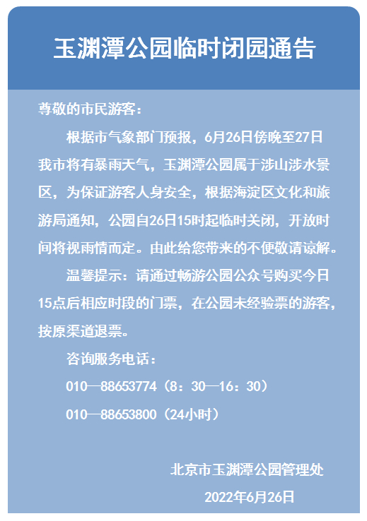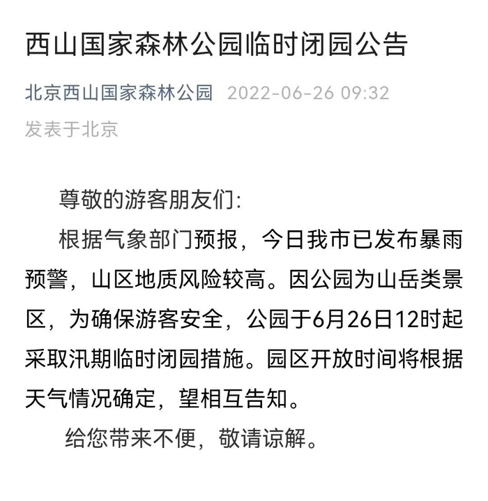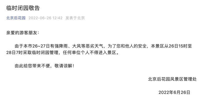 多预警、风险提示齐发!北京多个公园临时闭园,记住这个号码
