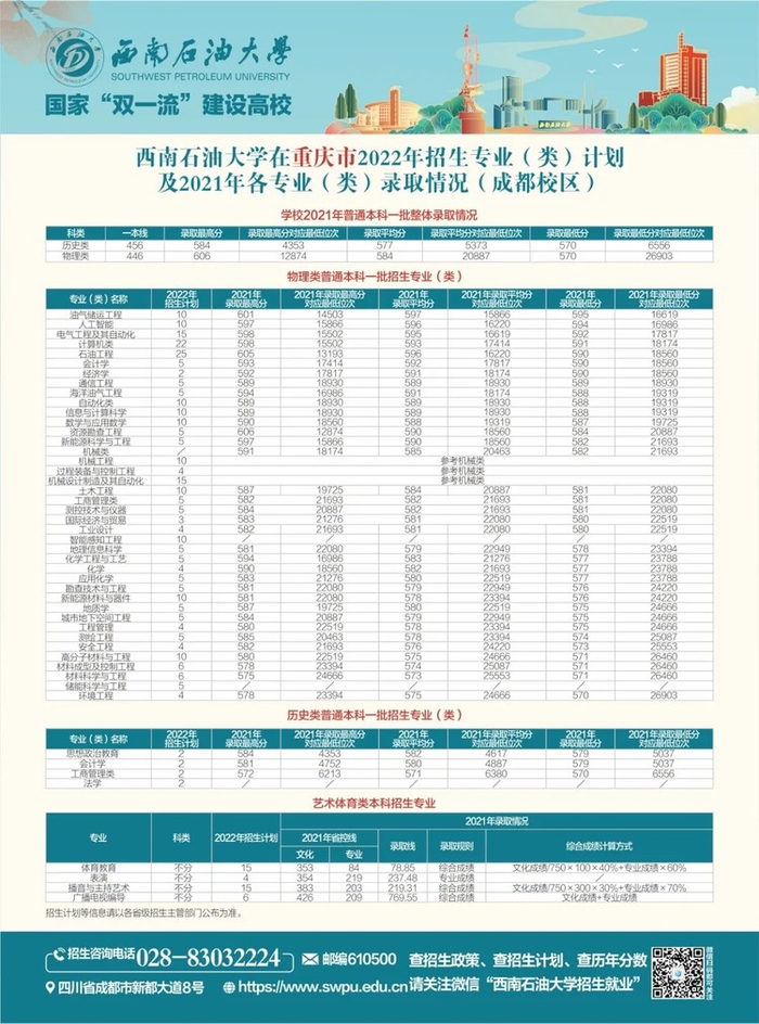 想要了解更多招生政策,考生家长可以通过西南石油大学本科招生信息网、“西南石油大学招生就业”微信公众号等方式进行查询。