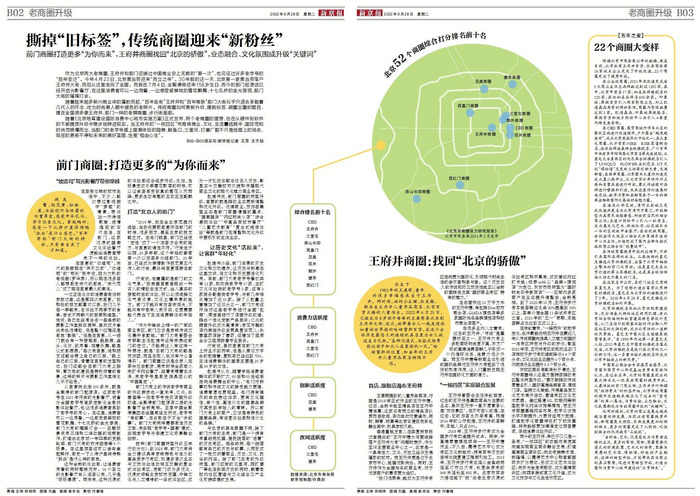 随着《北京培育建设国际消费中心城市实施方案》正式发布,两个老商圈的理想,也在从硬件到软件的不断提质升级中稳步地照进现实。当王府井的“一核四区”布局将商业、文化、生活囊括其中,国际范和时尚范喷薄而出,当前门的老字号插上国潮体验的翅膀,鲜鱼口、三里河、打磨厂都不只是地图上的地名,现在的更新不停和未来的美好蓝图,定是“相由心生”。