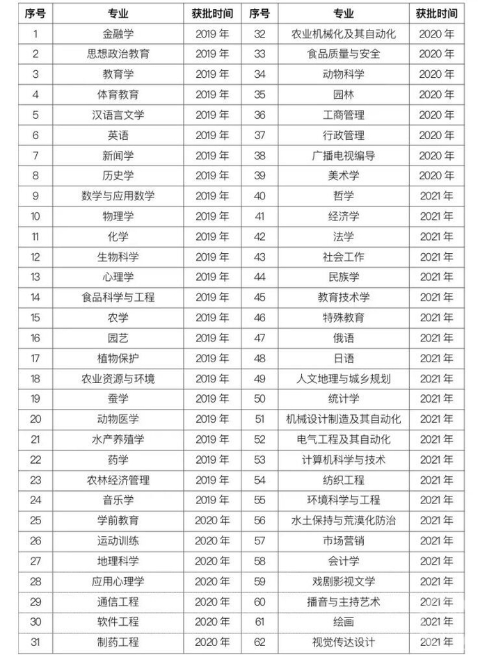 西南大学入选国家级一流本科专业建设点的专业