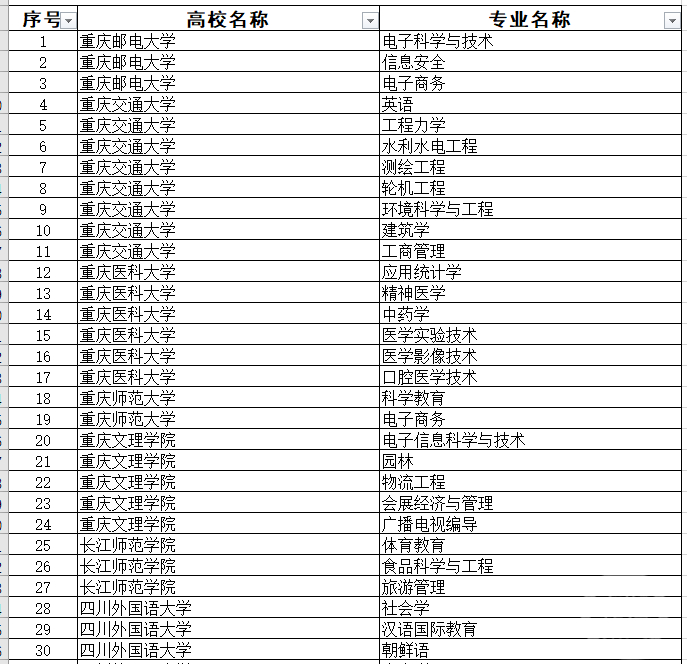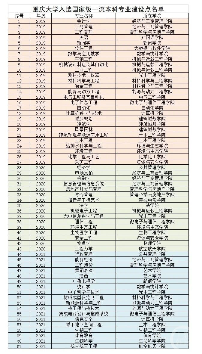 根据公布的名单,重庆大学有18个专业入选国家级一流本科专业建设点,西南大学23个专业入选国家级一流本科专业建设点。