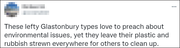 还有网民表示,“我从来没有去过格拉斯顿伯里音乐节,也不想去,音乐过时,(主题)太过政治化,很多垃圾,卫生间也很可怕,像什么样子?”
