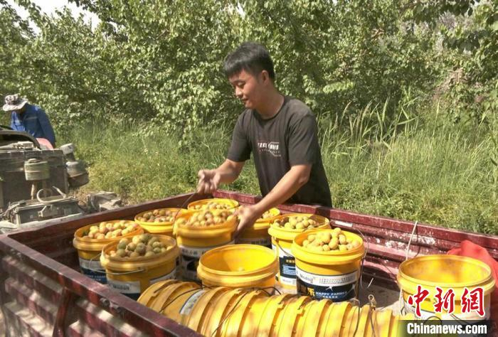 中新网乌鲁木齐6月29日电 (记者 戚亚平)进入6月下旬,新疆生产建设兵团第一师四团永宁镇吊干杏鲜杏,陆续上市销售,来自全国各地的客商涌入这里收购,宾馆甚至出现一房难求的局面。