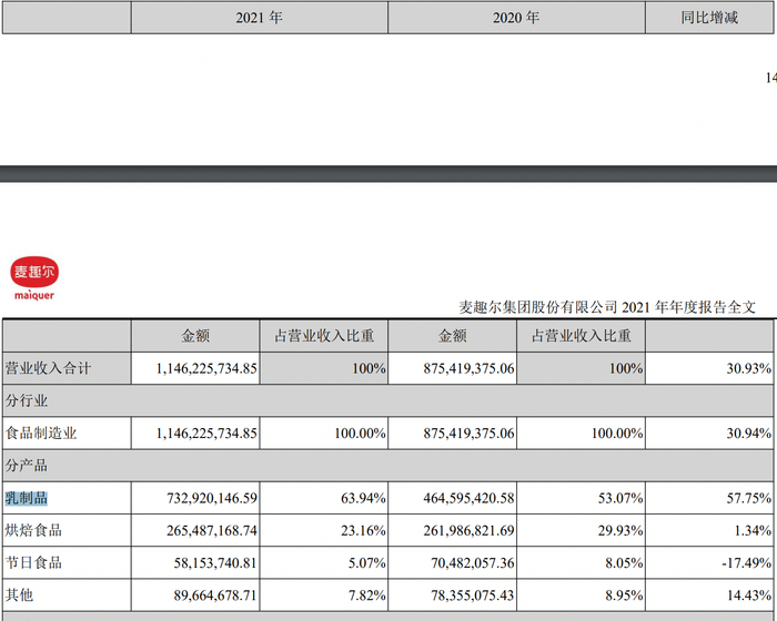 但在过去的2021年,麦趣尔虽营收同比增长了30.93%,达11.46亿元,但其净利润同比下降65.01%,仅有1845.75万元
