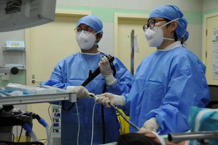 手术分两次进行。在麻醉团队全麻保驾护航下,于飞鸿小心翼翼地将小肠镜进入患儿,并逐渐向小肠深处前进。小肠全长约4到6米,迂曲冗长,肠腔狭小,而且小雪之前经过外科手术,缝合过后的小肠有很多“直角、死弯儿”,在于飞鸿娴熟精准的操作下,小肠镜朝着病灶位置一点一点推进。