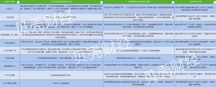 无明显标识,十家免税品网购小程序均不支持无理由退货退款