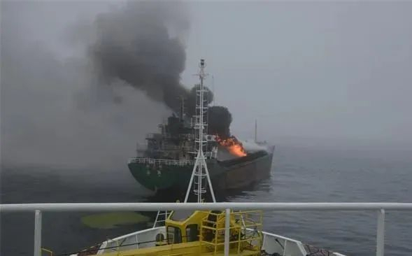 6月20日上午,一艘干货船在黄海北部距岸约50海里处突发火灾。事发后,船上14名船员安全获救。