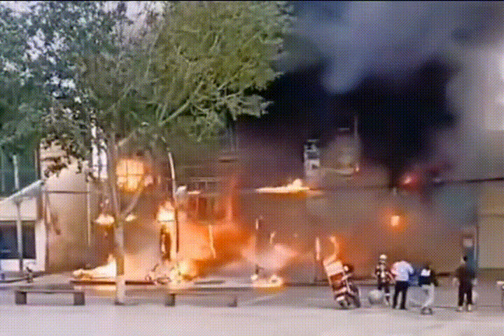湖北黄冈:电动车爆燃 25辆电动车瞬间葬身火海