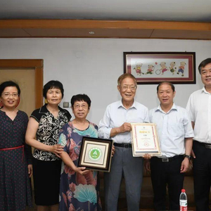 河南农业大学教授王泽霖(左四)将300万元奖金捐给学校。图/河南农业大学官方微信公众号