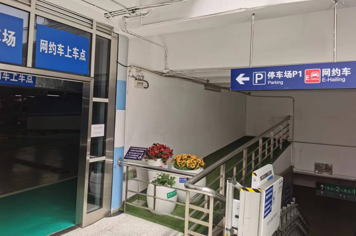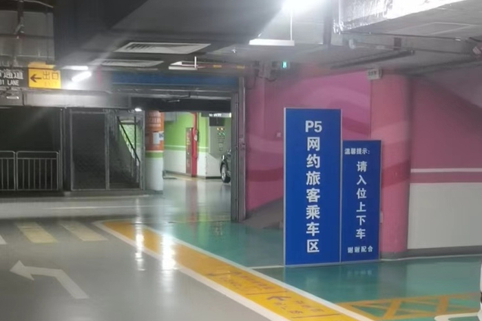 在P1、P5停车场设立2处网约旅客乘车区:P1网约旅客上车区设置在B区2道,P5网约旅客乘车区设置在A4通道。