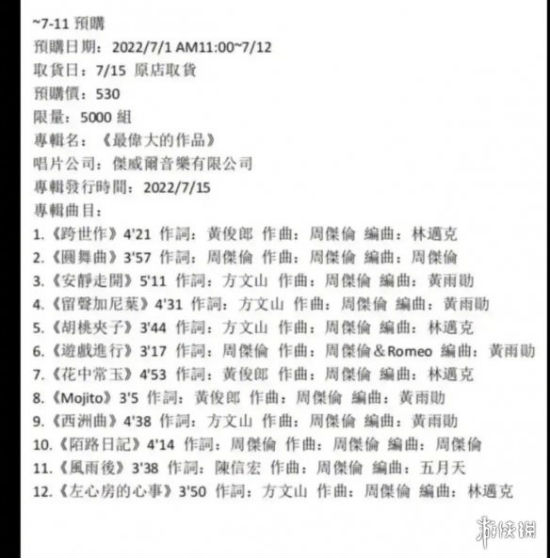 7月1日,周杰伦官宣新专辑最新消息。他在社交平台官宣表示:哥的最新专辑,最伟大的作品将于7月6日中午12点首播。