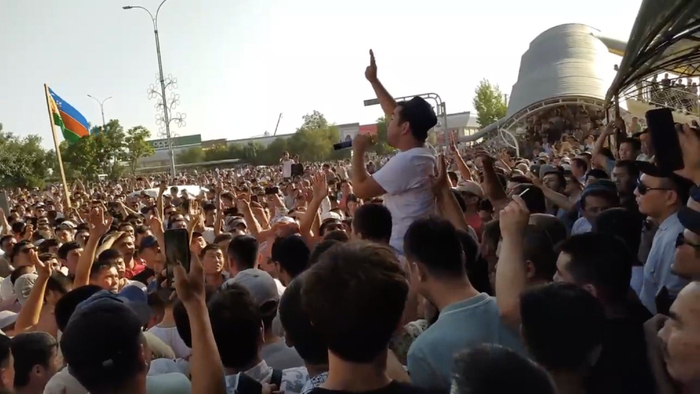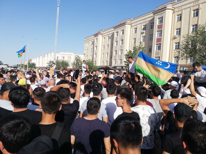 7月1日,卡拉卡尔帕克斯坦共和国首府努库斯市爆发大规模抗议。社交媒体上的现场视频显示,大量民众聚集在一座广场上高呼反对乌兹别克斯坦政府的口号。
