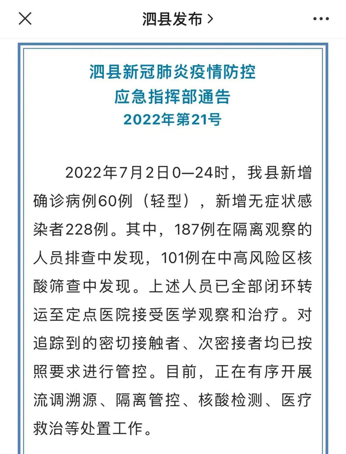 60+228!安徽泗县疫情会扩大吗?