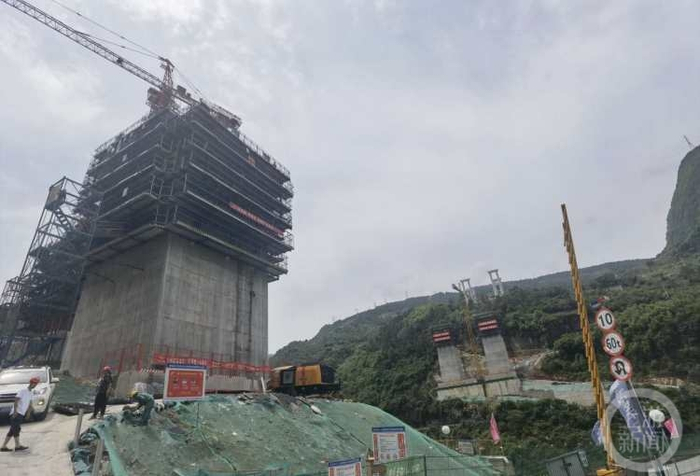 其中,观音庙乌江特大桥是渝湘复线武道路唯一控制性工程,大桥左线桥长924.08米,最大墩高107.824米;右线桥长944.08米,最大墩高115.292米,是目前国内在建跨径最大的连续钢构桥。
