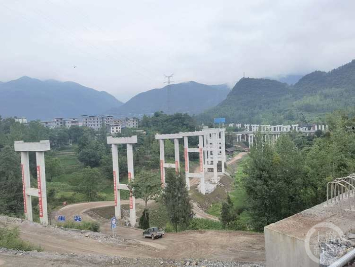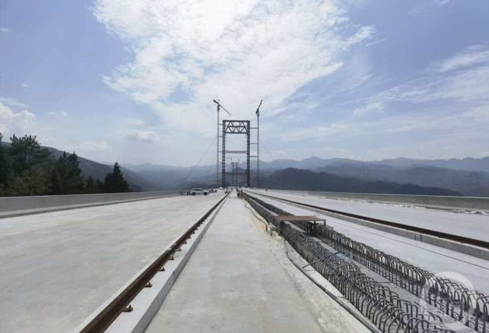 记者在施工现场看到,双堡特大桥下部结构已全部施工完成,大里程引桥T梁已全部架设完成,大小里程缆索吊塔架已全部施工完成,正在架设往复牵引系统。