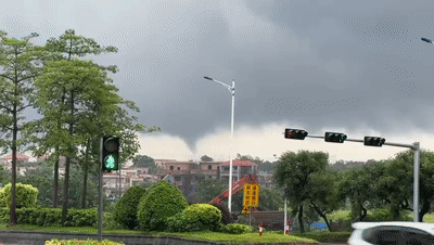 17时30分左右,佛山南海西樵镇出现龙卷风。