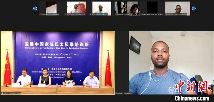 中新网郑州7月6日电 (记者 韩章云)“发展中国家陈氏太极拳培训班”开班仪式7月5日晚间在河南工业大学举行。在未来60天里,来自玻利维亚、委内瑞拉、厄瓜多尔、格林纳达、塞拉利昂、智利、巴拿马、贝宁8个国家的众多学员,将在线上习练陈氏太极拳。