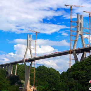 作为景文高速项目关键控制性工程,高岭头水库特大桥引桥长783.645米,主桥全长580米,主跨跨径300米,主塔全高210.32米。