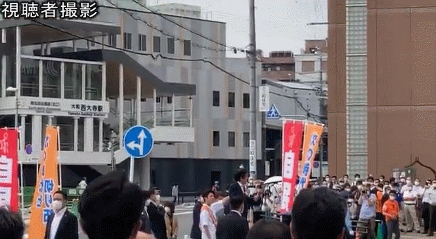 11点30分,前首相安倍晋三开始出现在奈良市大和西大寺轻轨车站附近。正在为7月10日参议院选举拉票的候选人,立即让出了演讲台的正中央位置,在有些零落的掌声中,安倍接过话筒,开始演讲。