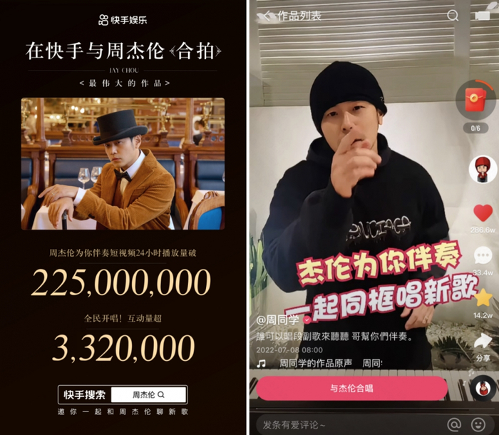 周杰伦快手发布新视频邀网友合唱 24小时播放量超2.2亿