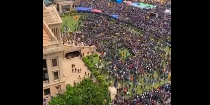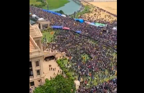 从总统住所上传至社交媒体平台的视频显示,数千名抗议者包围了宫殿,然后冲进了宫殿,要求总统拉贾帕克萨辞职。