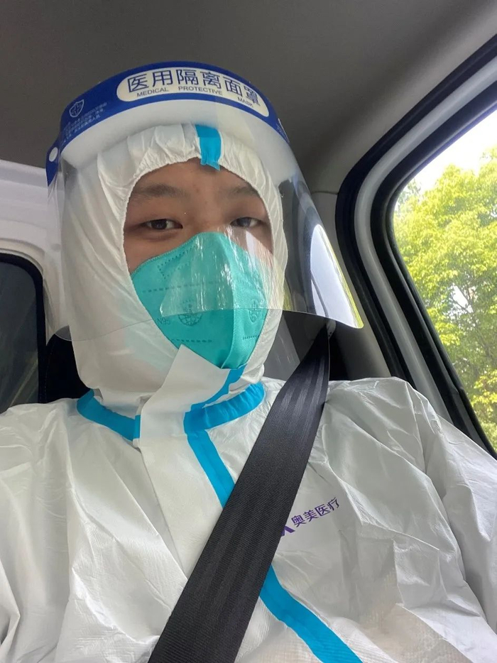 这期间,滴滴代驾为这些救护车司机建了一个微信群。每天,师傅们按时上传核酸证明,反馈情况,进行健康打卡。韦有邵每天6点起床,6点半吃早饭。吃完早饭,在专业人员的帮助下,进行个人防护和车辆消杀,然后就在救护车内等待指挥中心安排运送工作。对于他而言,早饭要多吃一点,因为运送患者的时间是随机的,何时吃上午饭和晚饭就很难说了。最晚的一次,韦有邵清晨5点才收车,上午9点又起来出车了。“一开始比较忙,前40天,几乎每天晚上都出车,睡觉并不安稳。后来情况好转一些了,但比干代驾肯定累。”