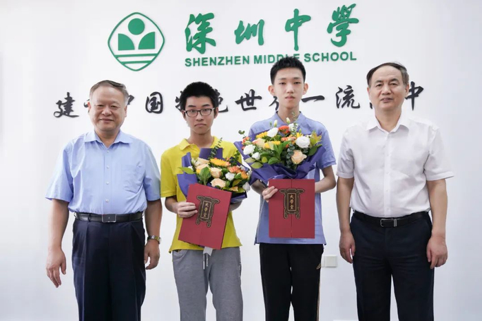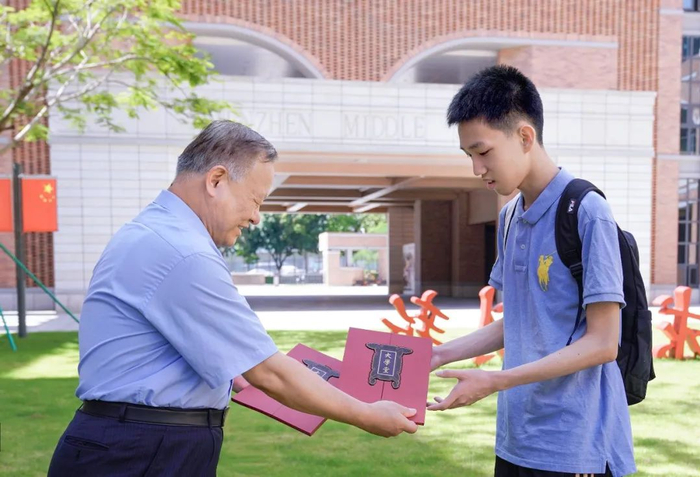 7月12日,中国科学院院士、北京大学博雅讲席教授、北京大学中俄数学中心主任张继平前往深圳中学,亲自为冯晨旭、彭也博两位同学送出了北京大学2022年本科生“首封”录取通知书,并和他们亲切交流。