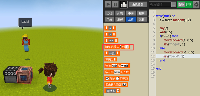 其中,代码方块里的指令的组织和相关的示例,也足够让孩子们学着让角色去做各种的动作,学会去控制摄像头的运动等等。让角色做出各种的动作,让角色放大缩小,或者相互的碰撞,或者同一个角色复制很多个。这个时期会持续一段时间,可以想象他们用这些指令也能够玩出无边的非常好玩的东西出来,这些将成为他们坚实的编程基础。
