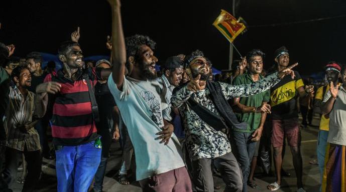 斯里兰卡民众街头起舞,挥舞国旗欢庆总统辞职