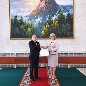 当地时间2022年7月13日上午,朝鲜驻俄罗斯大使申洪哲在朝鲜大使馆与顿涅茨克驻俄罗斯代表进行了会谈,并向她递交了一份朝鲜宣布承认顿涅茨克独立的文件。人民视觉 图