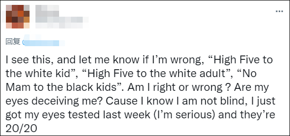 在Twitter上,这段视频观看量超200万,众多网民对罗西塔扮演者的行为不满,“是我看错了吗?跟白人击掌,忽略黑人小孩?”“小朋友很无辜,她们不该被如此对待”;