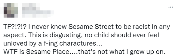 “我从来不知道芝麻街竟然也搞种族歧视?令人作呕。”