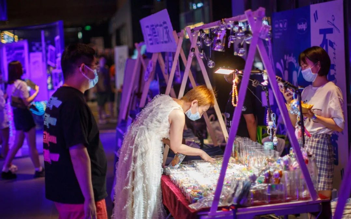 悬疑大会刮起了充满未来感的赛博朋克风潮,炫彩的霓虹灯光环绕在隆福北广场、隆福大厦一层及隆福文化中心,工作人员引领每一位入场玩家在元宇宙的“黄金世界”中,模拟在元宇宙世界中的社区生活。隆福文化中心也重新开放,并设置国风换装服务,身着汉服的佳人才子可登临观景台,在这夏夜微风中吃一碗红糖冰粉,尝一支博物馆联名的文创雪糕,遥眺故宫美景,坐望万家灯火。