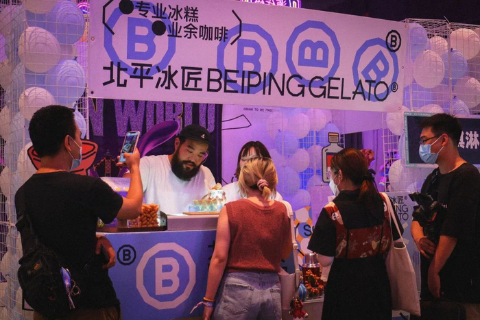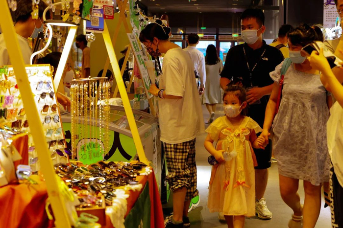 2022悬疑大会活动中打造的“谜雾市集”,是隆福寺多年来持续人气不衰的市集项目。在“宝藏”市场上,记者看到不仅有民间的各种文创艺术摊位,还有北平冰匠、橘气牛蘑王、老爷鲜酿等颇具特色的餐饮。