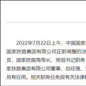 据中国国家铁路集团有限公司网站消息,2022年7月22日上午,中国国家铁路集团有限公司召开中层以上管理人员大会。