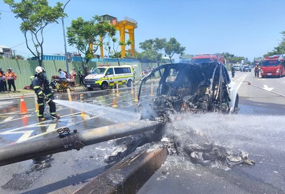 从现场照片来看,当地消防员将火扑灭后,车身已被烧掉半截。而据“联合新闻网”报道,警方确认林志颖无酒驾情况,造成事故的具体原因还在进一步调查中。