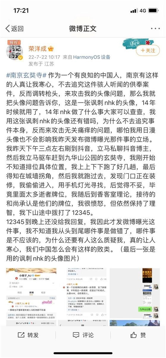 今年的2月份一共有28天,也就是说,在网友拍摄后的第二天或者第三天,玄奘寺就好巧不巧地“发现相关情况”了?之前供奉的4年多时间里,寺庙都没有发现,在办理供奉手续时,也没有人对供奉几个日本人产生什么疑问?